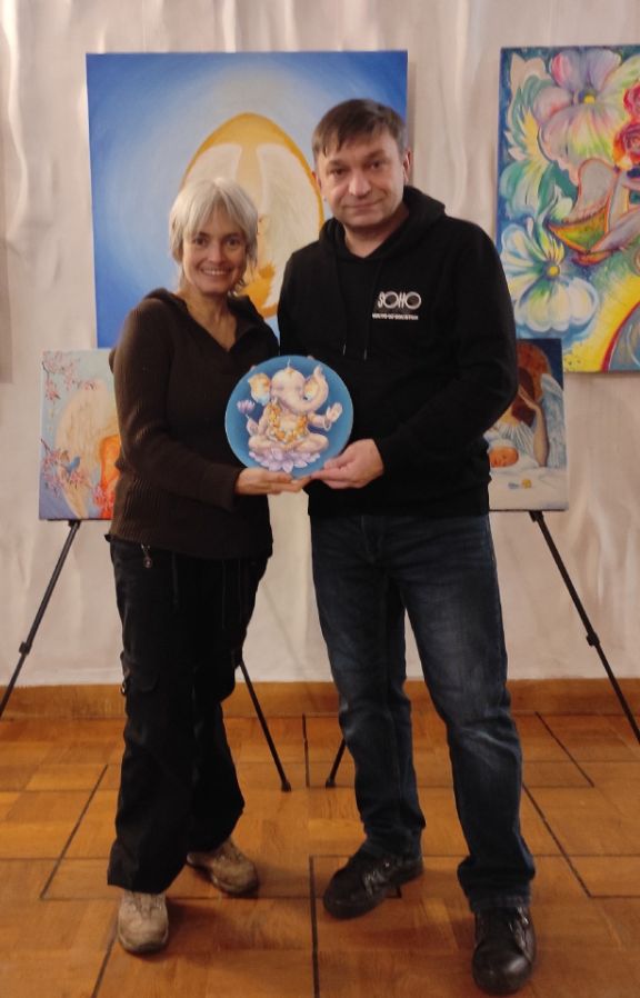 Удивительно, что именно эта работа стала сотой! Когда проект стартовал, мы взяли для демонстрации идеи круглой картины одну из работ Татьяны - "Ангелы добролеты". И вот, спустя два с половиной года, ее работа для проекта была написана и встала на красивую 100-ю позицию. Именно в это время Татьяна смогла ненадолго приехать в Красноярск. Маленькое чудо )