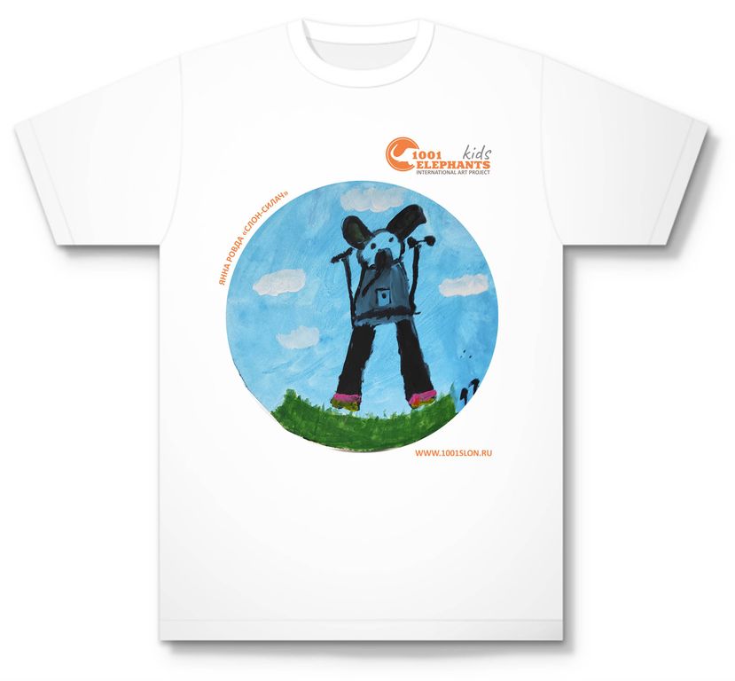 Футболка белая х/б с рисунком вашего ребенка для конкурса "1001 слон - дети".
